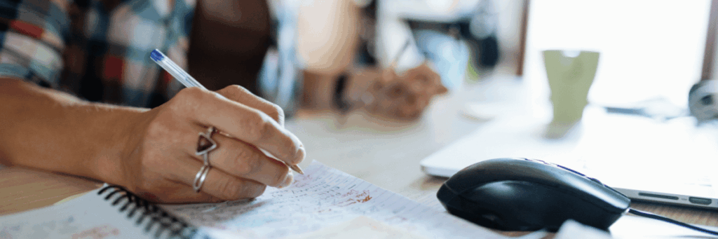 Person makes notes in a notebook