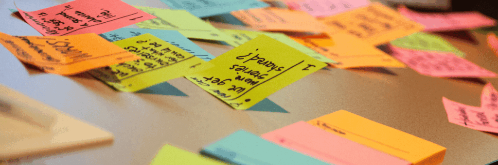 Post It notes on a table