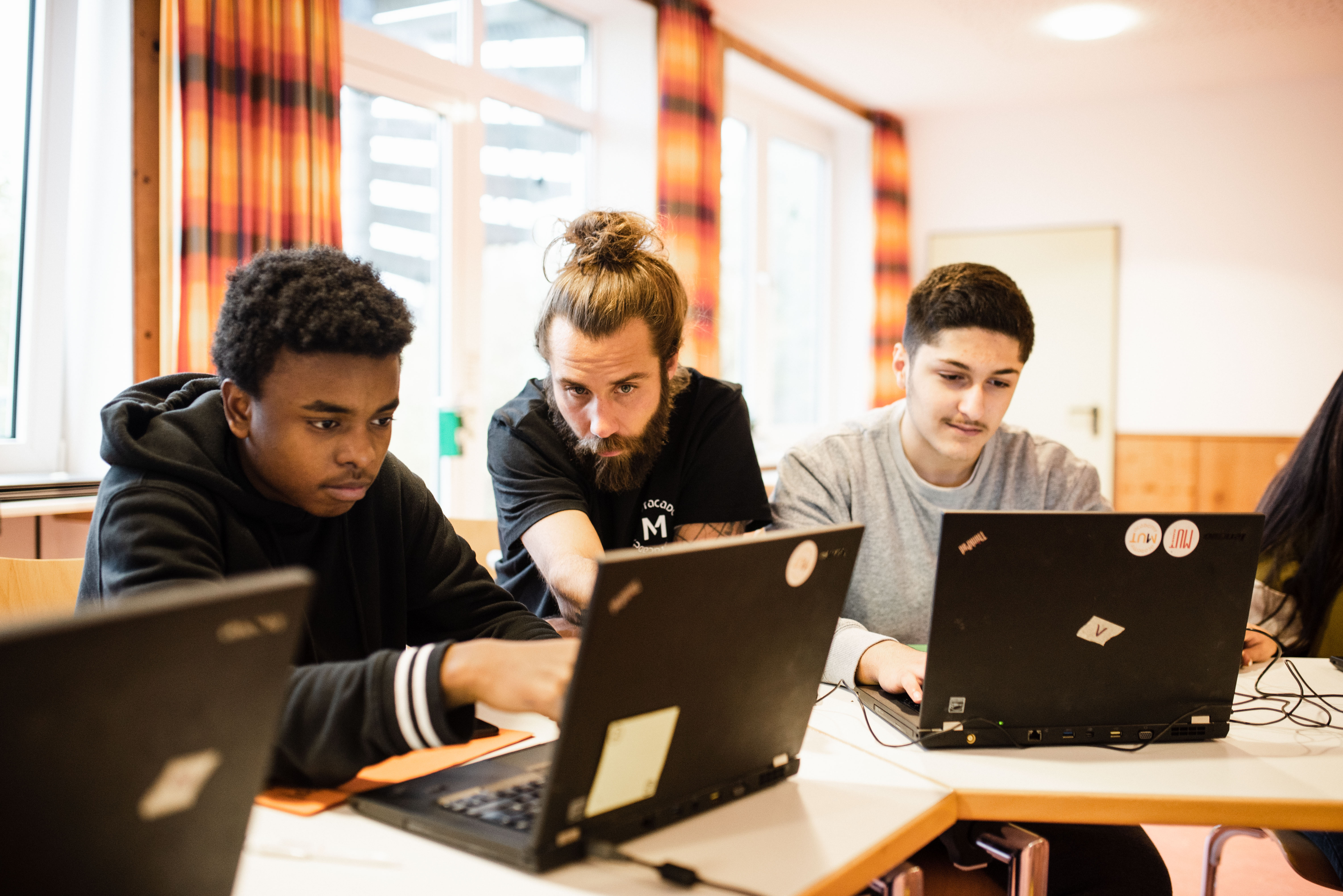 die jugendlichen Schüler.innen beim Bewerbungen schreiben in Hamburg. Während unserer offenen Bewerber-MUTwochs kommen die Jugendlichen jede Woche ins Büro der MUT Academy. Mit deiner Unterstützung am Computer arbeiten sie an ihren Bewerbungen, recherchieren mögliche Ausbildungsstellen und verschicken ihre Bewerbungsmappen.