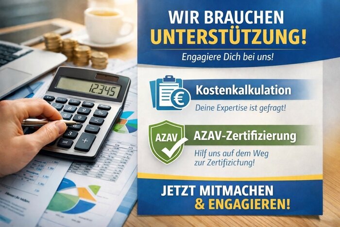Aktuell bereiten wir die AZAV-Zertifizierung vor, um unsere Bildungsangebote langfristig stabil zu finanzieren und zugänglich zu machen. Dafür benötigen wir Unterstützung bei der Kostenkalkulation und finanziellen Strukturierung unserer Angebote.