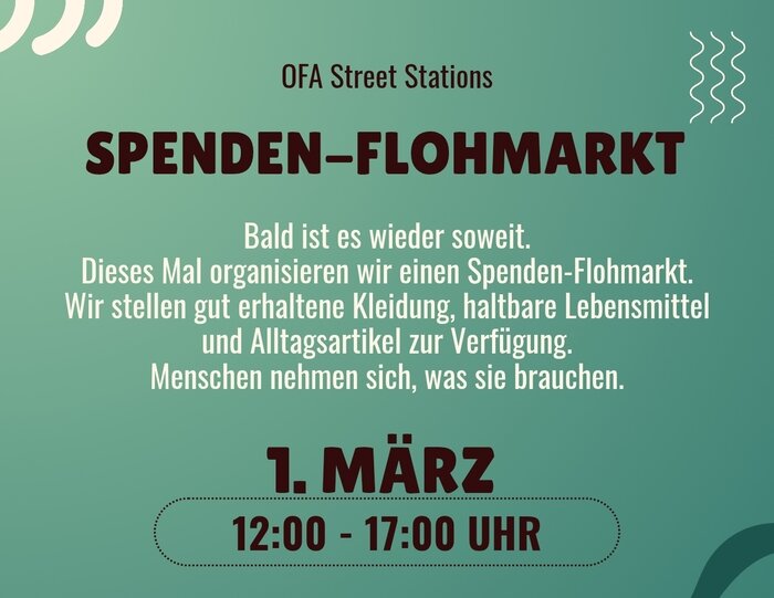 For our upcoming OFA Street Station, we are organizing a donation flea market in the center of Stuttgart.
