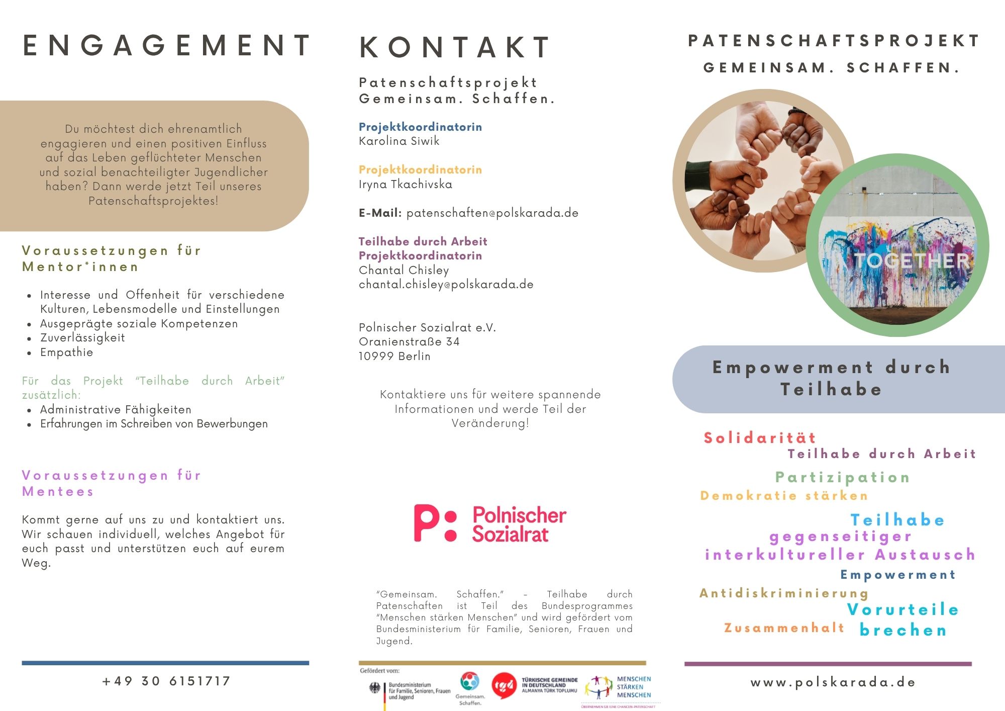 Wir vermitteln Mentor*innen an Geflüchtete und bildungsbenachteiligte Jugendliche. Die Tandems werden mit einem monatlichen Aktivitätenbudget unterstützt und können an unseren regelmäßig stattfindenden Treffen und Gruppen teilnehmen, beispielsweise Literaturmentoring, Videodreh, Bloggen oder Voguing. Zusätzlich bieten wir Schulungen und Workshops zu Themen wie interkulturelle Kommunikation, Wohnungssuche für Geflüchtete oder Vielfalt im urbanen Raum an.